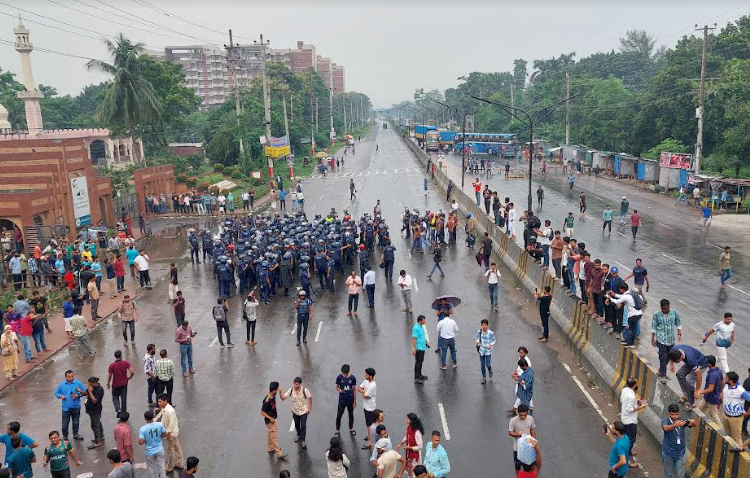 পুলিশের বাধা উপেক্ষা করে সরকারি চাকরিতে কোটা সংস্কারের দাবিতে ঢাকা-আরিচা মহাসড়ক অবরোধ করেছে জাহাঙ্গীরনগর বিশ্ববিদ্যালয়ের (জাবি) শিক্ষার্থীরা।