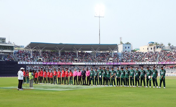 মঙ্গলবার শের-ই-বাংলা জাতীয় ক্রিকেট স্টেডিয়ামে সন্ধ্যায় ৬টায় গড়াল সিরিজের দ্বিতীয় টি-টুয়েন্টি। বিমান বিধ্বস্তের ঘটনায় শের-ই-বাংলাসহ বিসিবির সকল ভেন্যুতে জাতীয় পতাকা অর্ধনমিত রাখা হয়েছে। খেলা শুরুর আগে এক মিনিট নীরবতা পালন করেছে দুদলের খেলোয়াড়, মাঠকর্মী, দর্শক ও সাংবাদিকরাসহ স্টেডিয়ামে উপস্থিত সকলে।