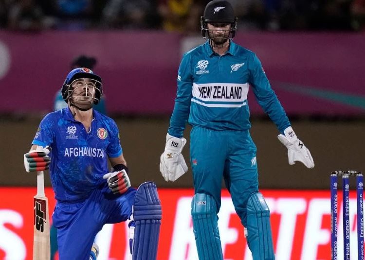 এরপর খুব দ্রুতই আফগানরা বাকি চার উইকেট হারায়। অভিজ্ঞ মোহাম্মদ নবি রানের খাতাই খোলেননি। ইনিংসের শেষ ওভারের প্রথম বলে রান আউট হওয়ার আগে রশিদ খান ৬ রান করেন। দ্বিতীয় বলে ফেরার আগে ৫৬ বলে ৫ চার ও ৫ ছক্কায় ৮০ রানের ইনিংস খেলেন গুরবাজ। উইকেটরক্ষক এ ব্যাটার ট্রেন্ট বোল্টের বলে হন বোল্ড। কোনো রান না করেই পঞ্চম বলে গ্লেন ফিলিপসের তালুবন্দি হন গুলবাদিন নাইব।