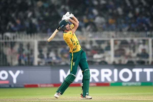 প্রোটিয়াদের শুরুটা ভালো হয়নি। ১২ রানে দুই উইকেট হারিয়ে চাপে পড়ে দলটি। কুইন্টন ডি কক ৮ বলে ১০ রান করে এবং রায়ান রিকেলটন খালি হাতে ফেরেন। তৃতীয় উইকেটে ডেওয়াল্ড ব্রেভিস ও এইডেন মার্করাম মিলে যোগ করেন ৪৩ রান। দলীয় ৫৫ রানে মার্করাম আউট হন। ২০ বলে ১৮ রান করেন।