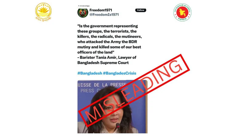 প্রধান উপদেষ্টার প্রেস উইং বলেছে, ২০০৯ সালের বাংলাদেশ রাইফেলস (বিডিআর) বিদ্রোহ নিয়ে তানিয়া আমিরের বক্তব্য বিভ্রান্তিকর। তার এমন মন্তব্য ক্ষমতাচ্যুত আওয়ামী লীগ সরকারের সমর্থক হিসেবে তার নিজস্ব রাজনৈতিক এজেন্ডারই প্রতিফলন।