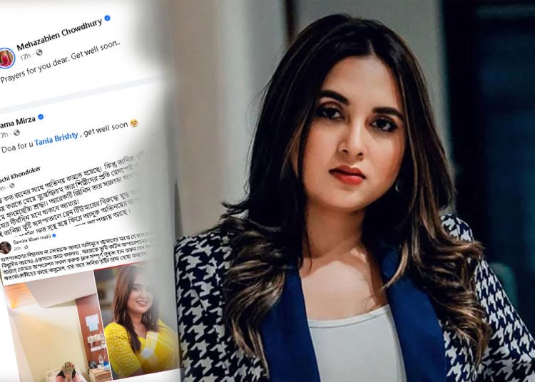 তানিয়ার অসুস্থতার খবরে বিনোদন অঙ্গনে উদ্বেগ ছড়িয়ে পড়েছে। তার সহকর্মীরা সুস্থতা কামনায় প্রার্থনা জানিয়েছেন। তানিয়া বৃষ্টির অসুস্থতার খবর শেয়ার করে মেহজাবীন চৌধুরী লেখেন,“তোমার জন্য প্রার্থনা প্রিয়। দ্রুত সুস্থ হয়ে ওঠো।”