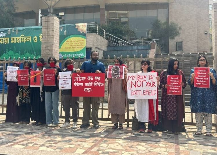 বৃহস্পতিবার ২৫ মার্চ বিশ্ববিদ্যালয়টির প্রধান ফটকের সামনে অবস্থান নিয়ে ধর্ষণ-নিপীড়নের জন্য বিচারহীনতার সংস্কৃতিকে দায়ী করেন শিক্ষার্থীরা।
