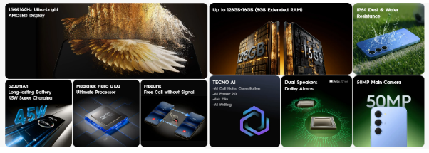 ডিভাইসগুলো বাংলাদেশের যেকোনো টেকনো ব্র্যান্ড স্টোর ও অনলাইনে পাওয়া যাবে আরও জানতে ভিজিট করুন www.tecno-mobile.com/bd ওয়েবসাইটে।