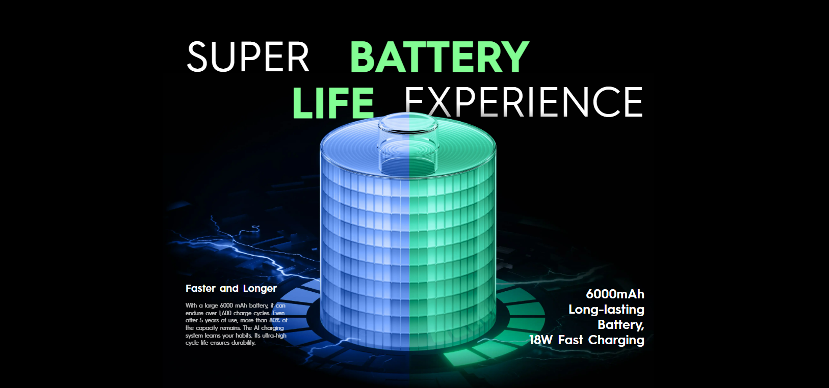 দীর্ঘ সময় ব্যাটারি ব্যাকআপ চান যারা, তাদের জন্য স্পার্ক ৪০সি একটি দারুণ অপশন। ৬০০০এমএএইচ ব্যাটারি, ১৮ওয়াট ফাস্ট চার্জিং, ৬.৬৭ ইঞ্চি এইচডি+ আইপিএস ডিসপ্লে (১২০ হার্জ), হেলিও জি৮১ প্রসেসর, ৮জিবি র্যাম (৪জিবি+৪জিবি এক্সটেন্ডেড) ও ১২৮জিবি স্টোরেজ সহ এটি একটি বেস্ট বাজেট ফোন। রয়েছে আইপি৬৪ রেটিং, ডিটিএস স্টেরিও স্পিকার এবং সাইড-মাউন্টেড ফিঙ্গারপ্রিন্ট সেন্সর। দাম: ১২,৪৯৯ টাকা (ভ্যাট প্রযোজ্য)।