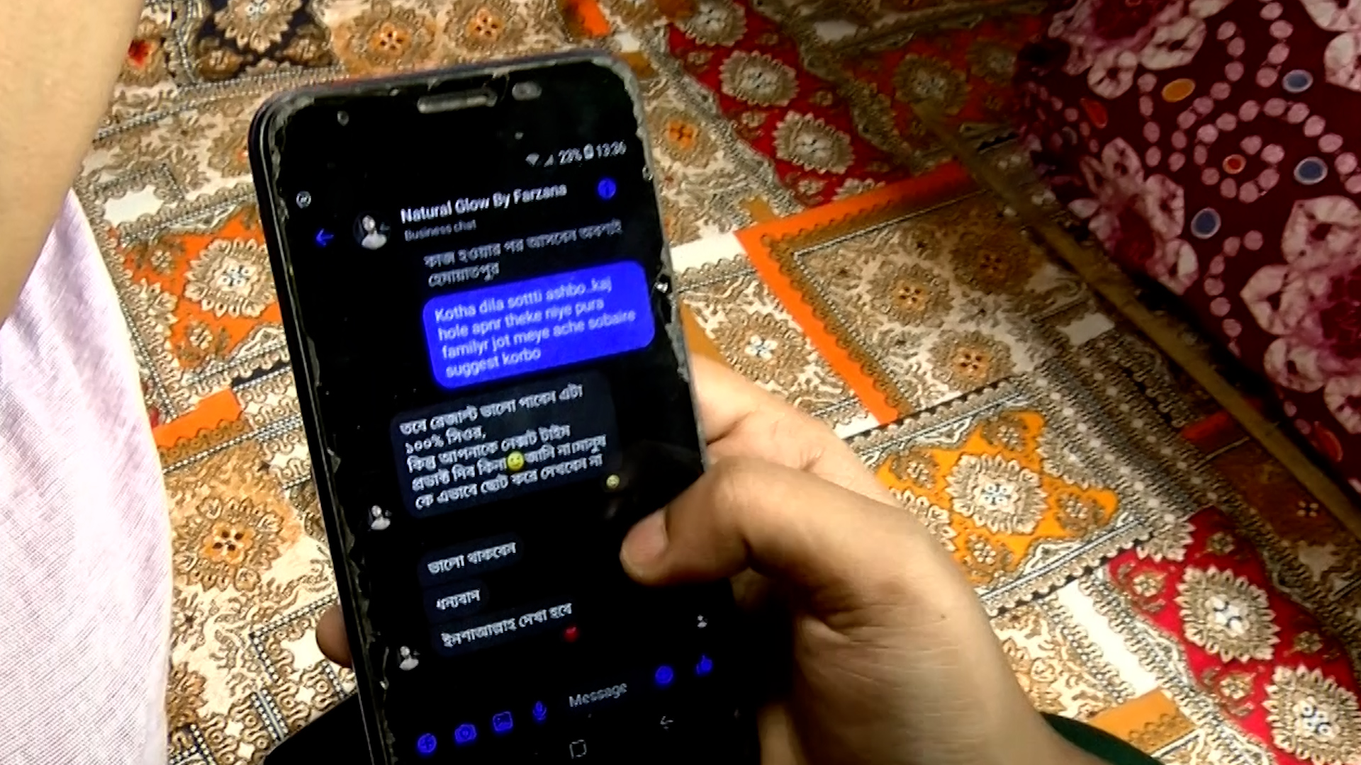 উমামা বলেন, আমি ন্যাচারাল গ্লো বাই ফারজান পেইজ থেকে তাদের বিজ্ঞাপন দেখে পণ্য কিনেছিলাম। আমি ১ হাজার ৫০০ টাকার পণ্য কিনি। তখন সেই পেইজে অনেক বিজ্ঞাপন চলছিল, একটা কিনলে একটা ফ্রি। তাই আমিও অর্ডার করি। পণ্য হাতে পাওয়ার পর ব্যবহার প্রণালি জানতে কিউআর কোড স্কেন করে দেখি কিছুই আসে না। তখন বুঝতে পারি পণ্যগুলো নকল।
