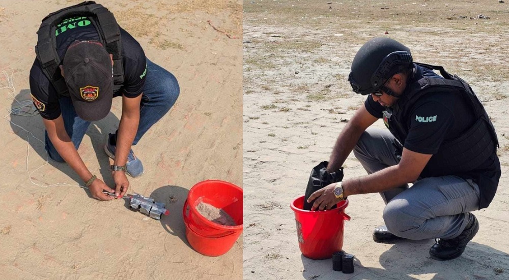 শের-ই-বাংলা নগর থানা উপ-পরিদর্শক (এসআই) মো. সাইফুল ইসলাম বলেন, ৯৯৯-এর মাধ্যমে আমরা প্রথমে সোয়া ১১টার দিকে খবর পাই। পরে বোম্ব ডিসপোজাল ইউনিটের সহায়তায় বেলা সোয়া ১টার দিকে একটি কালো ব্যাগের ভেতর থেকে কালো কসটেপ মোড়ানো তিনটি ককটেল উদ্ধার করা হয়।