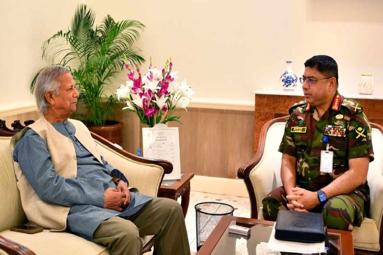 অন্তর্বর্তী সকারের প্রধান উপদেষ্টা প্রফেসর মুহাম্মদ ইউনূস এর সাথে সাক্ষাৎ করেছন সেনাবাহিনীর প্রধান জেনারেল ওয়াকার-উজ-জামান।