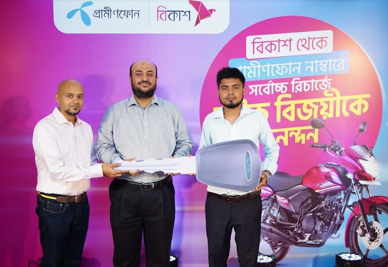 ‘বাইক হবে তার, বিকাশ থেকে গ্রামীণফোনে সর্বোচ্চ রিচার্জ যার’ ক্যাম্পেইনের মোটরবাইক বিজয়ীদের হাতে পুরস্কার তুলে দিয়েছে বিকাশ। এছাড়াও দু’পর্বের ক্যাম্পেইনে মোট এক হাজার ২০০ গ্রাহক জিতে নেন ক্যাশব্যাক, কুপনসহ বিভিন্ন পুরস্কার।