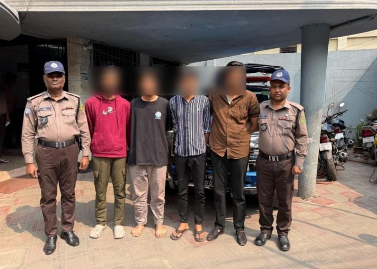 গ্রেপ্তার চারজন হলেন – তানভীর আহমেদ ওরফে ফাহিম (২২), ইফফাত ইয়ামিন লিখন (২৩), হাসান আল বান্না ওরফে হাসান (২০) এবং মোস্তাকি রহমান (২১)।