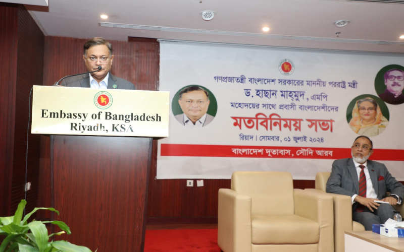 সোমবার (১ জুলাই) সৌদি আরবের রাজধানী রিয়াদে বাংলাদেশ দূতাবাসে প্রবাসীদের সাথে মতবিনিময় সভায় তিনি একথা জানান।