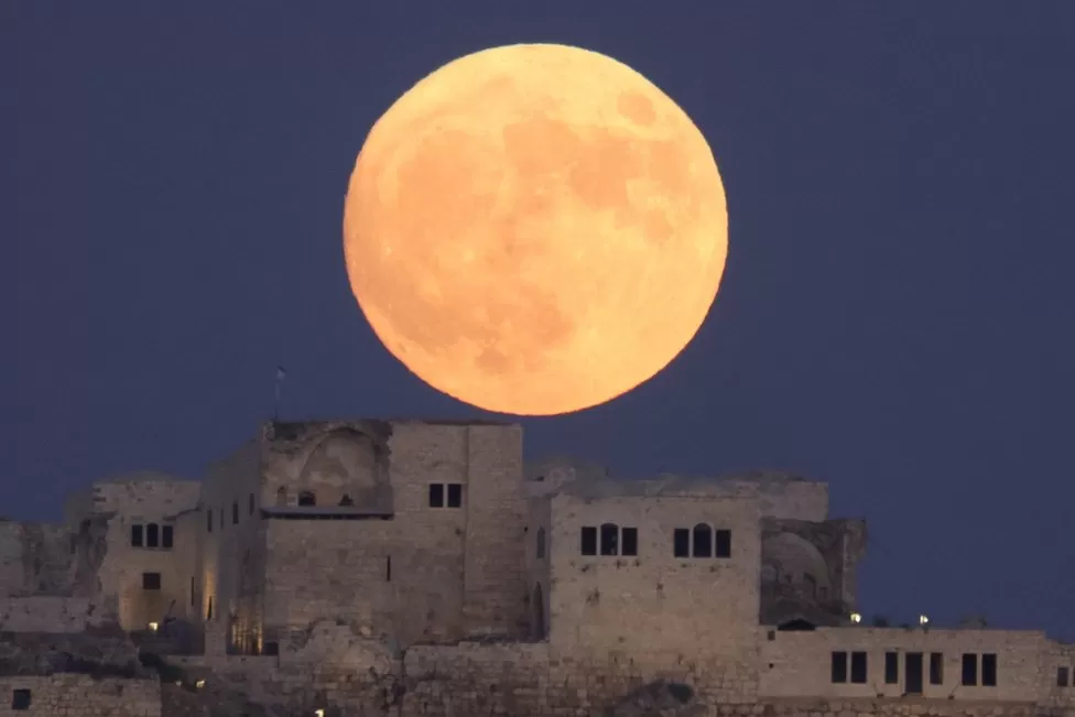 চাঁদ ইসরায়েলের রোশ হায়াইন শহরের কাছে একটি প্রাচীন দুর্গের উপর দিয়ে ঘুরছে বলে মনে হচ্ছে