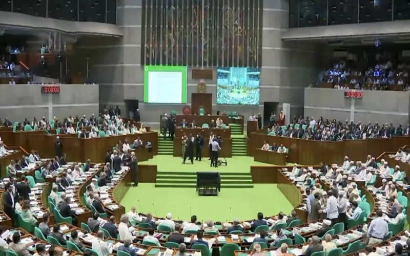 এর আগে প্রথম অধিবেশনের শুরুতে ড. খন্দকার মোশাররফ হোসেনের সভাপতিত্বে স্পিকার ও ডেপুটি স্পিকার নির্বাচন অনুষ্ঠিত হয়। প্রধানমন্ত্রী ও সংসদ নেতা তারেক রহমান স্পিকার হিসেবে মেজর (অব.) হাফিজ উদ্দিন আহমদের নাম প্রস্তাব করলে তা কণ্ঠভোটে অনুমোদিত হয়।