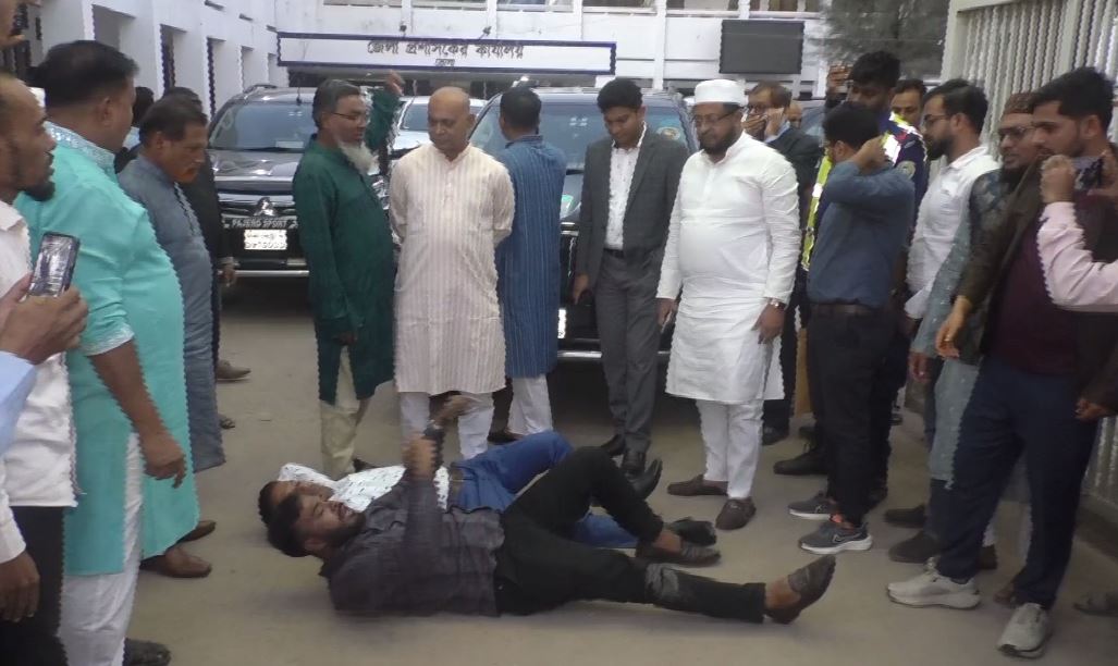 শুক্রবার (১৪ নভেম্বর) বিকেলে জেলা প্রশাসকের কার্যালয়ের সামনে এ ঘটনা ঘটে।