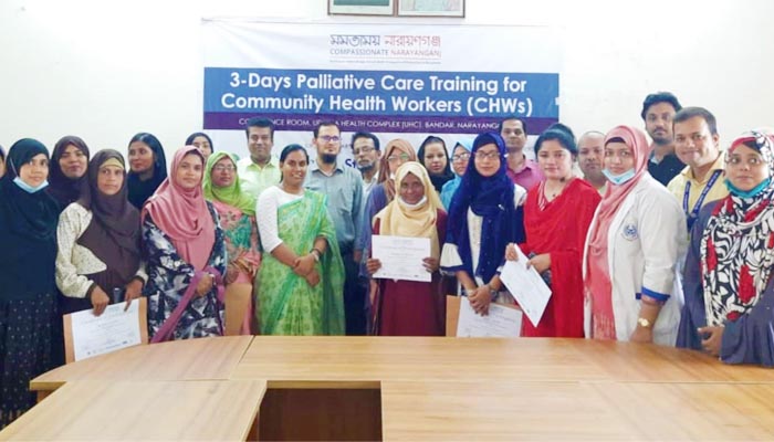 নারায়ণগঞ্জের বন্দরে কমিউনিটি স্বাস্থ্যসেবা কর্মীদের প্যালিয়েটিভ কেয়ার বিষয়ে প্রশিক্ষণ দেওয়া হয়েছে। বন্দর উপজেলা স্বাস্থ্য কমপ্লেক্সে ৩ দিনের প্রশিক্ষণ শেষে ২৫ জন কমিউনিটি স্বাস্থ্যসেবা কর্মীকে সনদ দেয়া হয়।