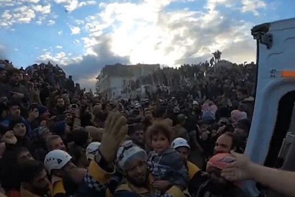 সিরিয়ার সিভিল ডিফেন্স স্বেচ্ছাসেবক সংস্থা দ্য হোয়াইট হেলমেট সম্প্রতি এই উদ্ধারের একটি ভিডিও শেয়ার করেছে, যেখানে এই বিস্ময়কর দৃশ্য দেখা যায়।