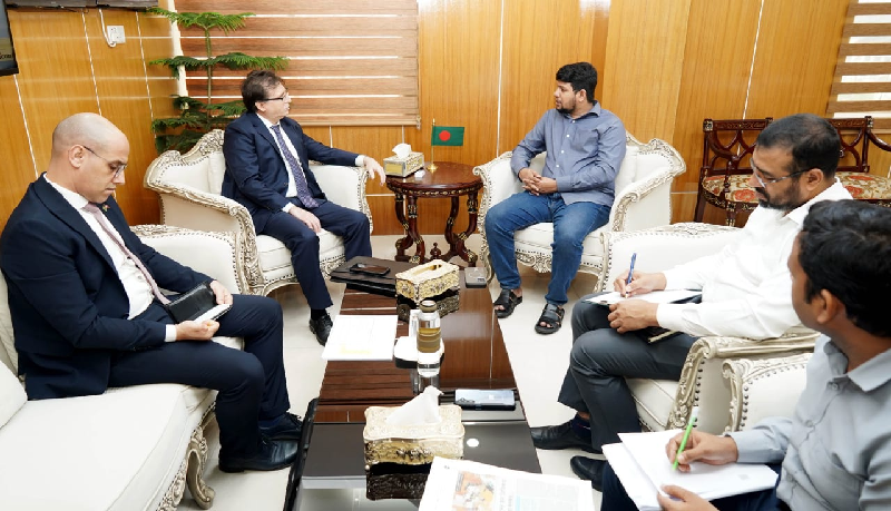 তথ্য ও সম্প্রচার উপদেষ্টা মো. মাহফুজ আলমের সঙ্গে সাক্ষাৎ করেছেন বাংলাদেশে নিযুক্ত তুরস্কের রাষ্ট্রদূত রামিস সেন।