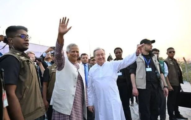 প্রধান উপদেষ্টা অধ্যাপক ড. মুহাম্মদ ইউনূস এবং জাতিসংঘ মহাসচিব আন্তোনিও গুতেরেস আজ শুক্রবার উখিয়ায় শরণার্থী শিবিরে এক লাখ রোহিঙ্গাদের সঙ্গে ইফতার করেন। এর আগে তারা বিকেল ৫. ৩৫ মিনিটে শরণার্থী শিবিরে পৌঁছালে রোহিঙ্গারা হাত নেড়ে তাদের উষ্ণ অভ্যর্থনা জানায়। উভয় নেতা সাদরে হাত নেড়ে তাদেরকেও অভিবাদন জানান।