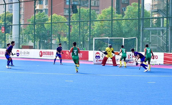 চীনের দাজহুতে প্রথম কোয়ার্টারে দুই গোলে এগিয়ে যায় বাংলাদেশ। দ্বিতীয় কোয়ার্টারে দুই গোল শোধ করে জাপান সমতা ফেরানোর পর মোহাম্মদ আব্দুল্লাহর ফিল্ড গোলে ফের ৩-২তে এগিয়ে যায় বাংলাদেশ। তৃতীয় কোয়ার্টারেও লিড ধরে রাখে লাল-সবুজের দল। কোন দলই গোল আদায় করতে পারেনি তখন।