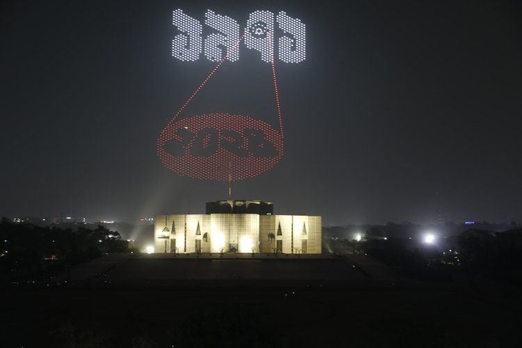 ‘নতুন বছর, নতুন বাংলাদেশ’ থিমকে সামনে রেখে এবারের বাংলা নববর্ষ ১৪৩২-কে ঘিরে রাজধানী ঢাকায় অনুষ্ঠিত হয়েছে এক ব্যতিক্রমধর্মী ড্রোন শো।