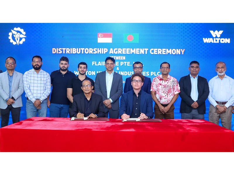 সম্প্রতি রাজধানীর বসুন্ধরায় ওয়ালটন করপোরেট অফিসে সিঙ্গাপুরের এয়ার কন্ডিশনিং খাতের খ্যাতনামা প্রতিষ্ঠান ‘ফ্লেয়ার এমঅ্যান্ডই প্রাইভেট লিমিটেড’ এর সঙ্গে ওয়ালটন হাই-টেক ইন্ডাস্ট্রিজ পিএলসি’র এক ডিস্ট্রিবিউটরশিপ চুক্তি স্বাক্ষরিত হয়। এর আওতায় সিঙ্গাপুরে ওয়ালটন ব্র্যান্ডের পরিবেশক হিসেবে কার্যক্রম পরিচালনা করবে ফ্লেয়ার এমঅ্যান্ডই। এরই অংশ হিসেবে প্রতিষ্ঠানটি প্রাথমিকধাপে ওয়ালটন থেকে উল্লেখযোগ্য অঙ্কের চিলার টাইপ কমার্শিয়াল এসি নিচ্ছে।
