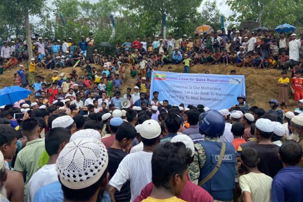 বারবার প্রত্যাবাসন নিয়ে বৈঠক হলেও কোনমতেই শুরু হচ্ছে না প্রত্যাবাসন। তাই দ্রুত প্রত্যাবাসন ও নিপীড়নের বিচার নিশ্চিত করার দাবিতে স্বতঃস্ফূর্ত ভাবে মানববন্ধনে জড়ো হয়ে যান হাজারো রোহিঙ্গা। মানববন্ধন ধীরে ধীরে সমাবেশে রূপ নেয়। সমাবেশে তারা ২০১৭ সালে তাদের উপর ঘটে যাওয়া হত্যা, ধর্ষণসহ নিপীড়নের সুষ্ঠু বিচার দাবি করেন। পূর্ণ মর্যাদা নিয়ে দ্রুত প্রত্যাবাসন কামনা করেন।