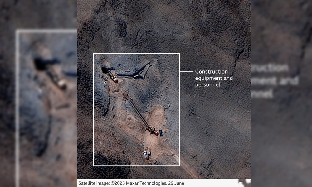 ২৯ জুনের ওই এলাকার স্যাটেলাইট ছবিতে দেখা গেছে, একটি এক্সকাভেটর ও ক্রেন পারমাণবিক স্থাপনার অ্যাক্সেস রাস্তার ওপর কাজ চলছে। যেখানে মার্কিন ‘বাঙ্কার-বাস্টার’ বোমার হামলা হয়েছে।