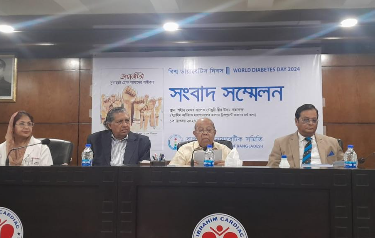 আগামীকাল বিশ্ব ডায়াবেটিস দিবস উপলক্ষ্যে ‘বাংলাদেশ ডায়াবেটিক সমিতি’ (বাডাস) আজ বুধবার ১৩ নভেম্বর দুুপুরে ইব্রাহিম কার্ডিয়াক হাসপাতালের অরগান ট্রান্সপ্লান্ট ভবনের শহীদ মেজর সালেক চৌধুরী বীর উত্তম সভাকক্ষে আয়োজিত সংবাদ সম্মেলনে বিশেষজ্ঞ চিকিৎসকগণ একথা বলেন।