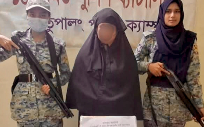 আটককৃত নারী হলেন শ্রাবণী ওরফে সাবু (৪০), ওই ক্যাম্পের এহসানুল হকের স্ত্রী।