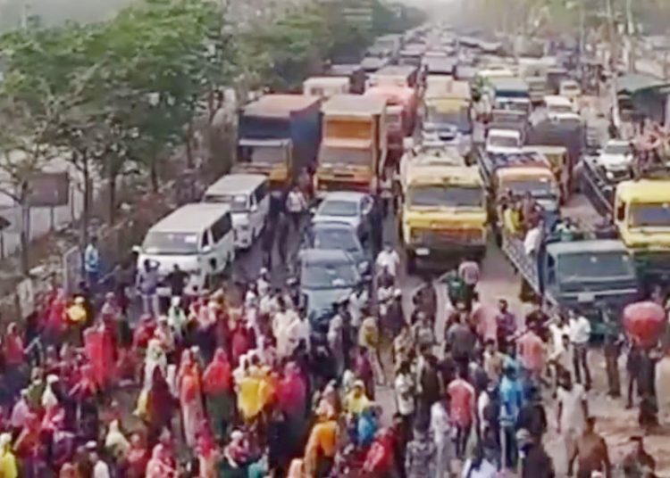 পুলিশ জানায়, সকালে শ্রমিকরা কারখানায় যোগদান এসে এবারের ঈদের ছুটি বেশি দাবি করে। কিন্তু কর্তৃপক্ষ নিয়মের বাইরে ছুটিয়ে দিতে নারাজ। এর জের ধরে বিক্ষুব্ধ শ্রমিকেরা সকাল সাড়ে আটটা থেকে মহাসড়কে অবস্থান নিয়ে অবরোধ কর্মসূচি শুরু করে। পরে শিল্প পুলিশ ও সেনাবাহির হস্তক্ষেপে প্রায় এক ঘন্টা পর পরিস্থিতি স্বাভাবিক হয়।