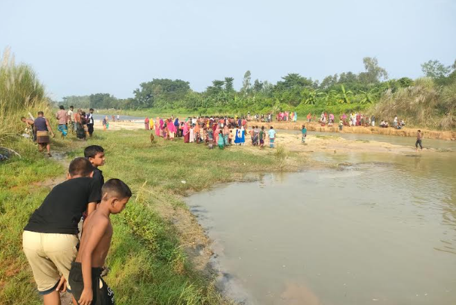 জয়পুরহাটের পাঁচবিবিতে ঘাসের বস্তা নিয়ে নদী পার হতে গিয়ে স্বাধীন (১৮) নামের এক যুবক নিখোঁজ হয়েছেন।