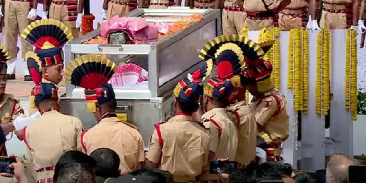 স্টেডিয়াম থেকে প্রায় ২০ কিলোমিটার দূরে কামারকুচি এনসি গ্রামে পূর্ণ রাষ্ট্রীয় মর্যাদায় জুবিনের শেষকৃত্য সম্পন্ন হয় ৷ আসাম পুলিশ গান স্যালুট জানান এই বিখ্যাত গায়ককে।